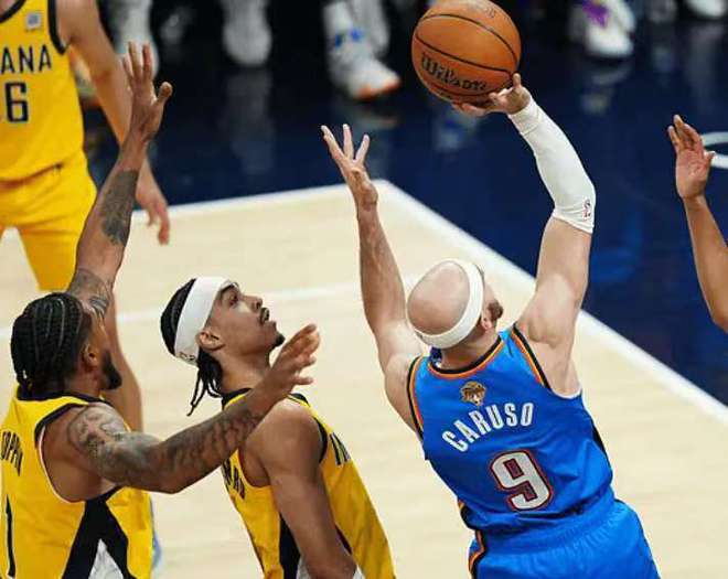 北京时间6月14日,2025年NBA总决赛G4比赛,卡鲁索再度爆发30分钟高效9中7,其中三分2中1与罚球7中5,轰下20分5抢断1盖帽成为总决赛历史替补首人创造纪录,在场正负值+14并列全场最高值,成为雷霆逆转赢球的头号奇兵。